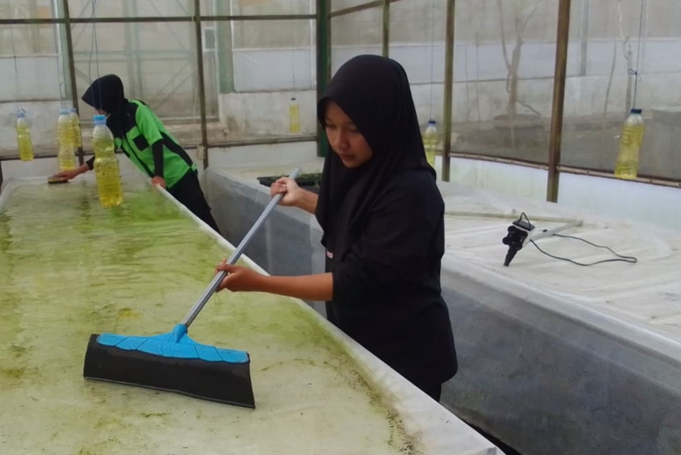 b. Sterilisasi dilakukan dengan menyemprot ruangan screen house menggunakan campuran air dan 2 ml/l pemutih (Bayclin).