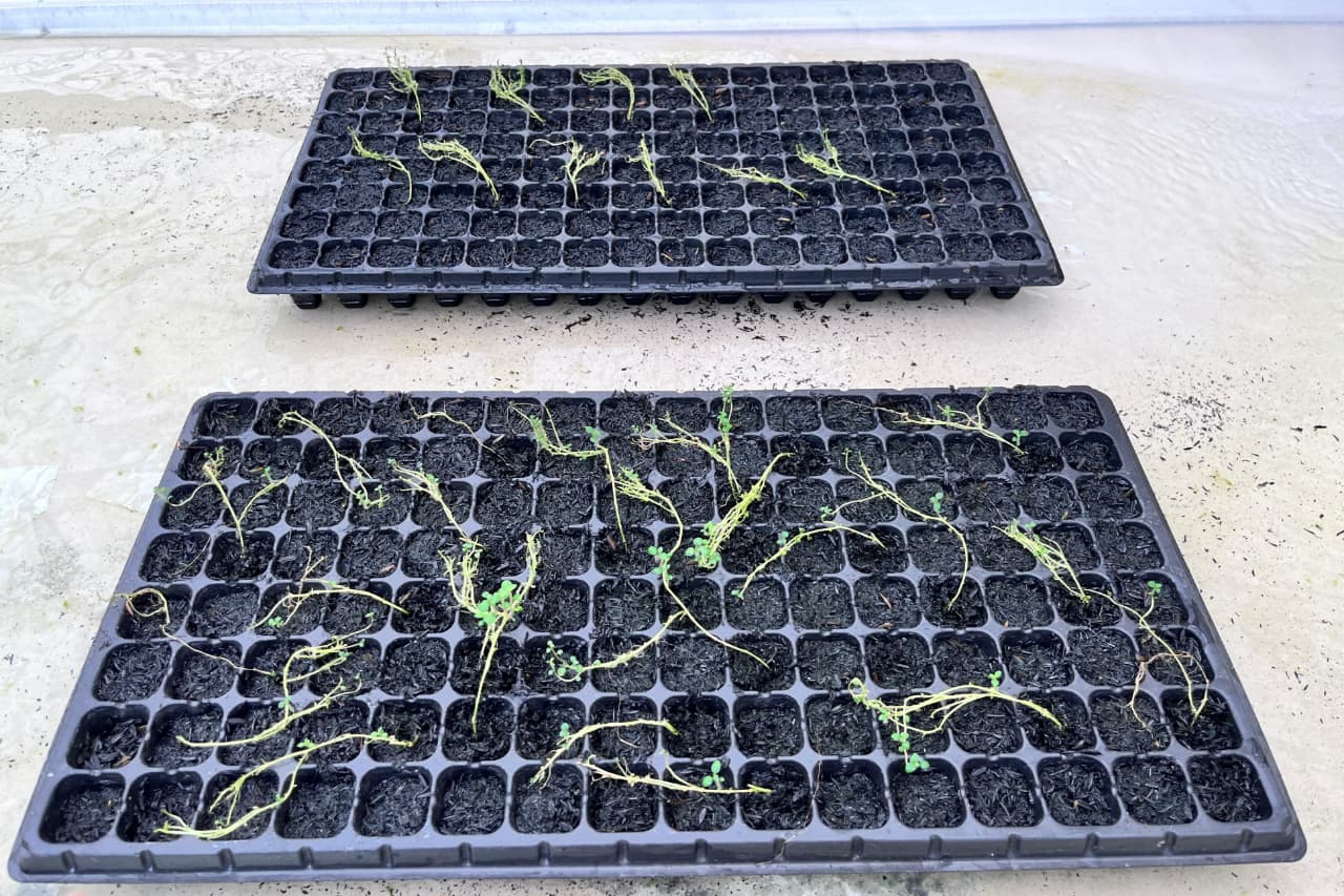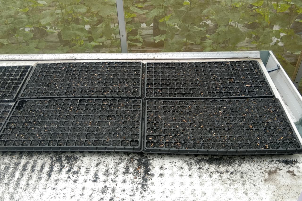 Media tanam berupa arang sekam dan cocopeat dengan perbandingan 2:1 diisikan pada tray lalu disiram air biasa agar media tetap basah.