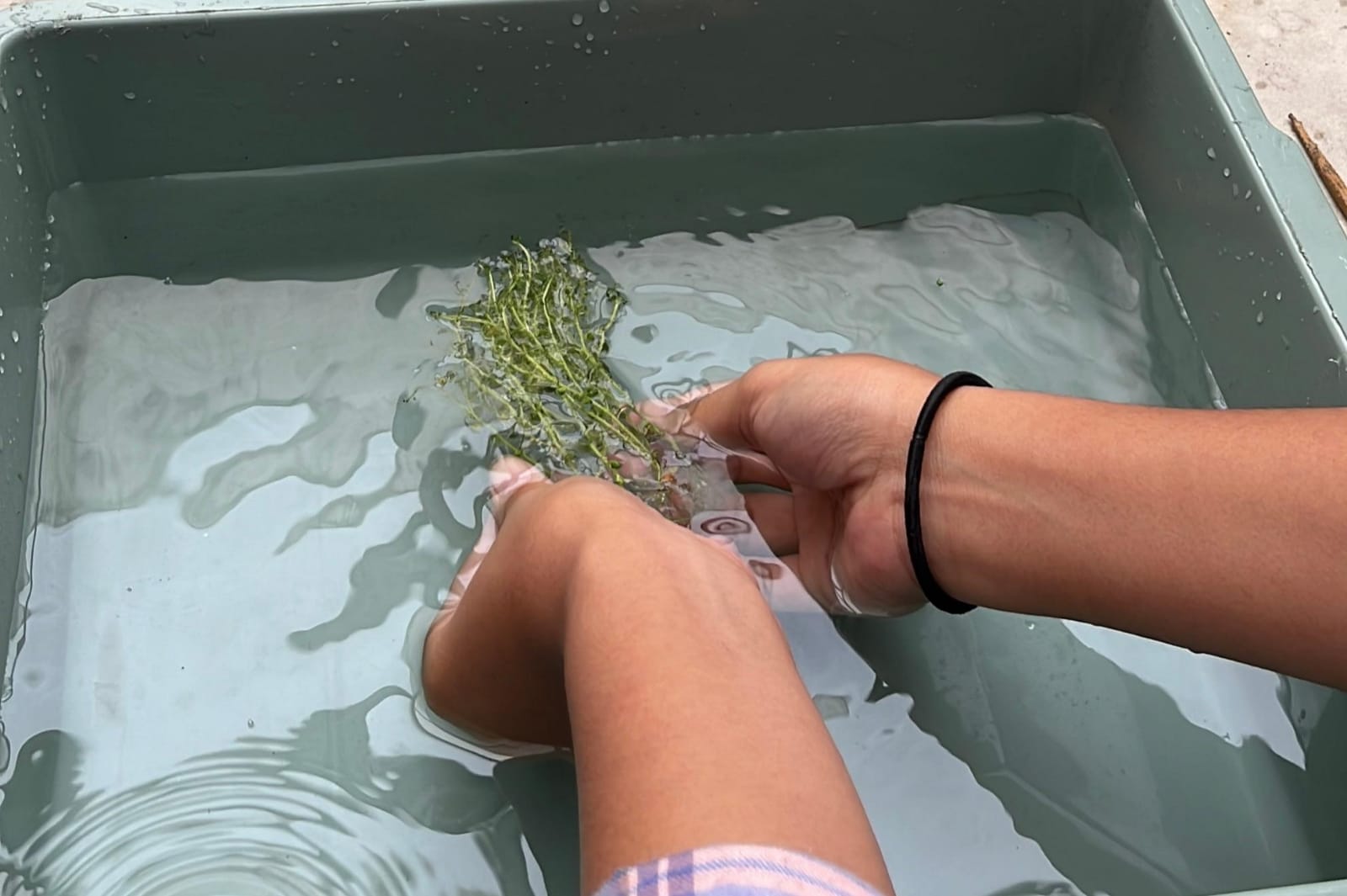 b. Planlet kemudian dikeluarkan dari botol dan dicuci dengan air bersih hingga tidak terdapat sisa-sisa media sebelumnya.