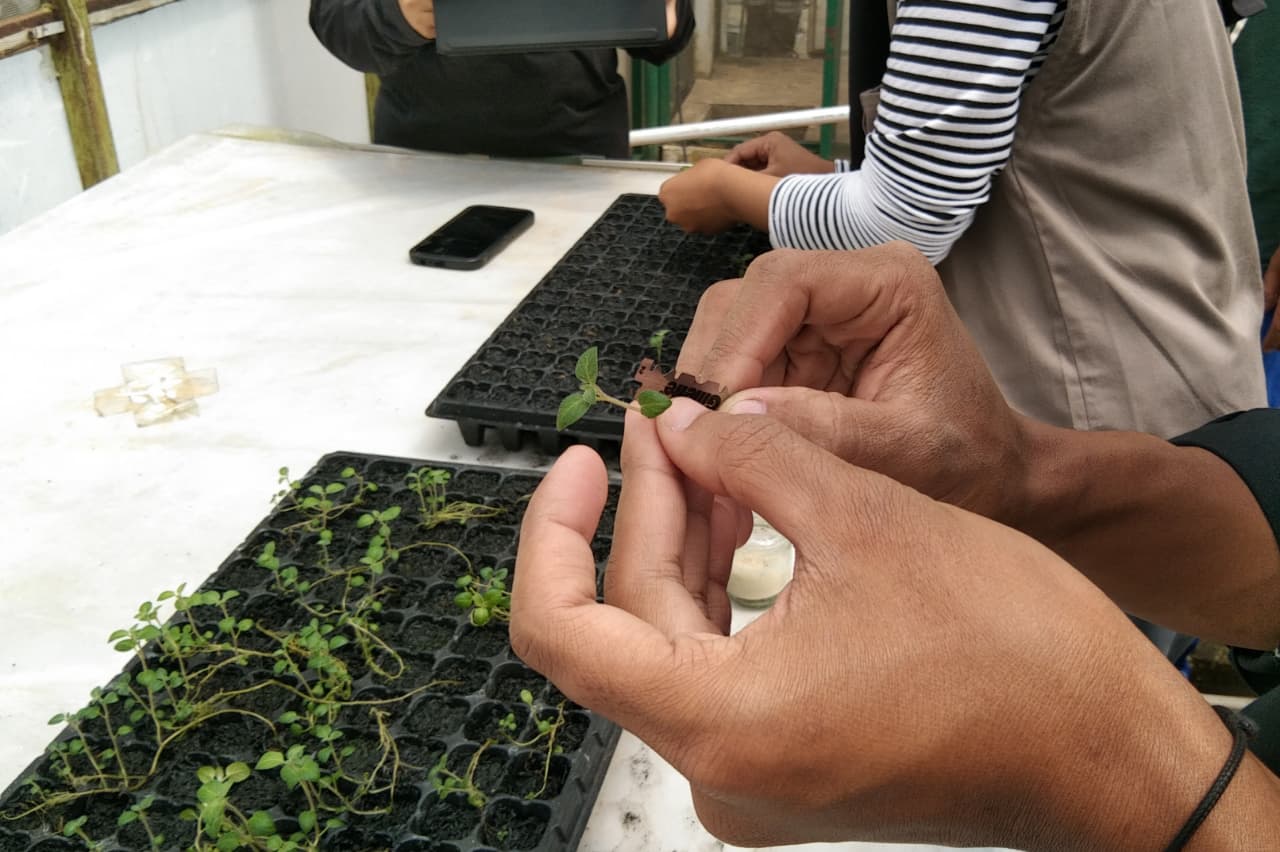 a. Planlet yang sudah bersih kemudian ditanam di lubang tray semai.