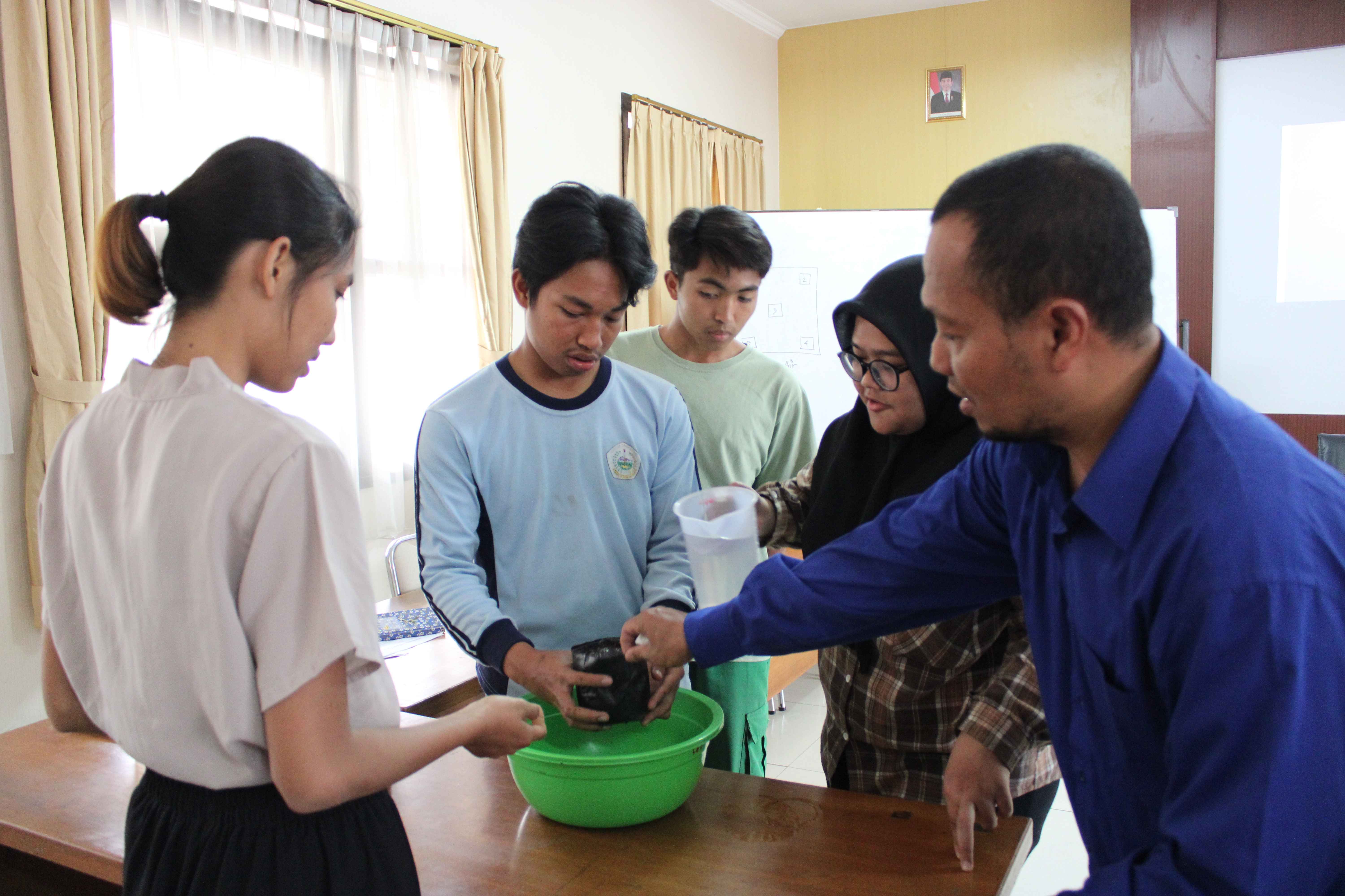 Untuk menambah pengalaman peserta, Widyaiswara melakukan praktik. Seperti pada materi pemeliharaan yang disampaikan oleh Abd. Rohim. Pada kesempatannya Ia mengajak peserta praktik mengukur daya simpan air dalam tanah dengan simulasi sederhana. Melalui simulasi ini diharapkan peserta dapat lebih memahami teknik penyiraman yang efektif dan efisien pada tahapan pemeliharaan tomat.