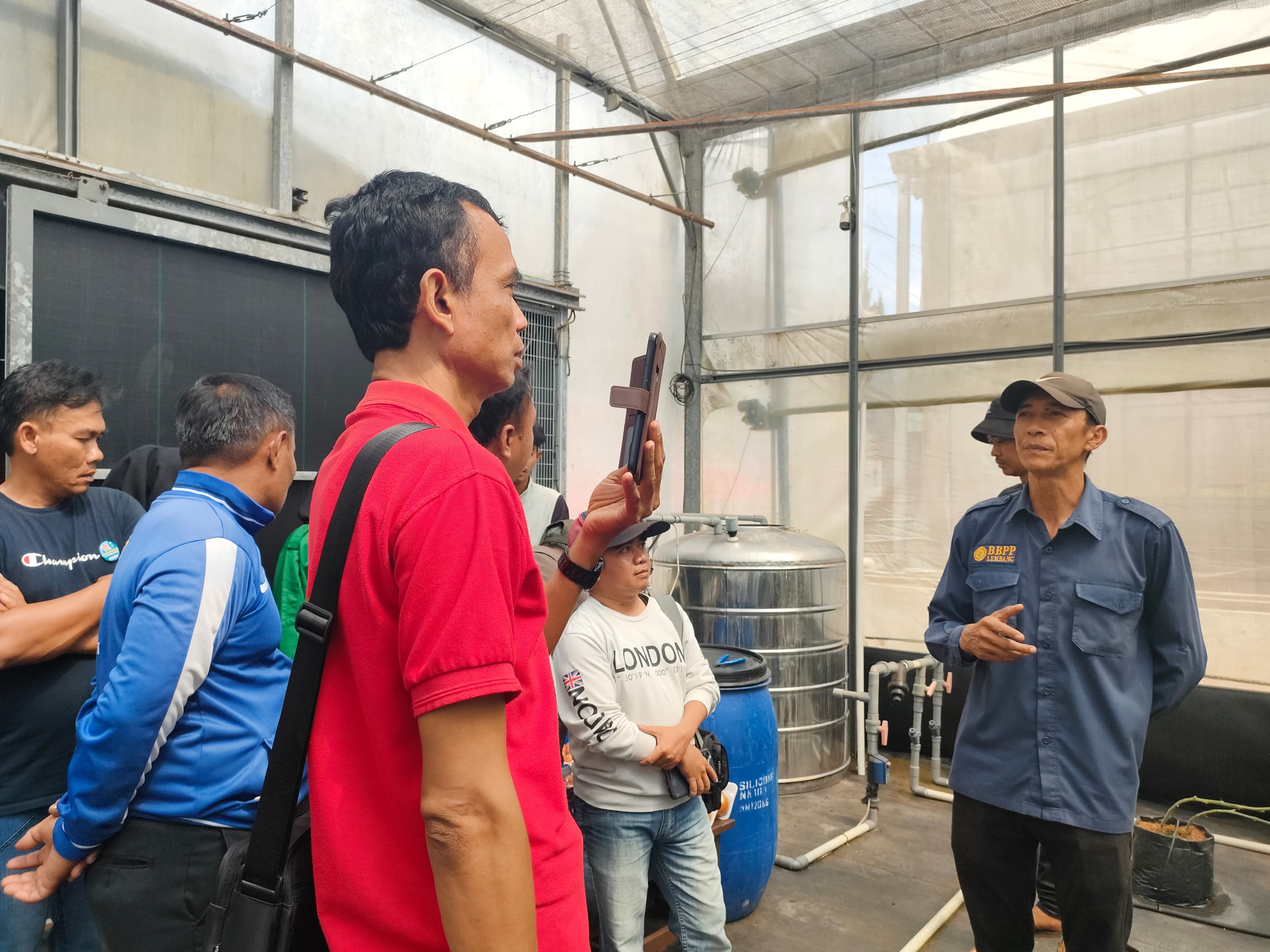 Dalam kunjungan ini, para perangkat desa dari Kecamatan Kertasemaya diajak mengelilingi IA, melihat koleksi tanaman yang dibudidayakan dengan teknologi hidroponik berbagai sistem. Ada 5 sistem pada budidaya tanaman secara hidroponik yang diterapkan di IA BBPP Lembang, yaitu irigasi tetes, deep flow technique, nutrient flow technique, wick system, dan aeroponik.